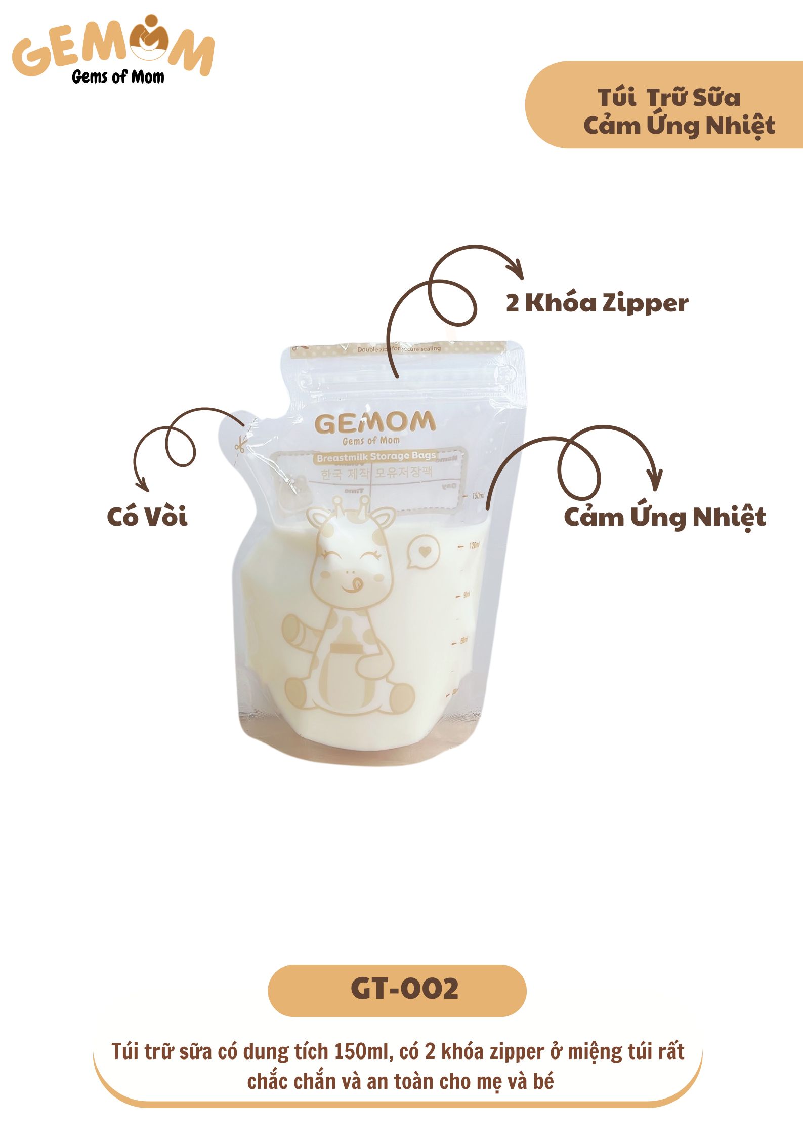 Túi trữ sữa 150ml 30 túi/ hộp – GT-002